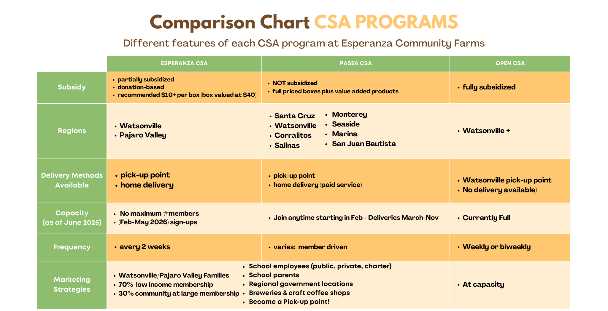 At EsperanzaCommunityFarms, we offer three CSA options designed for different needs and levels of participation.